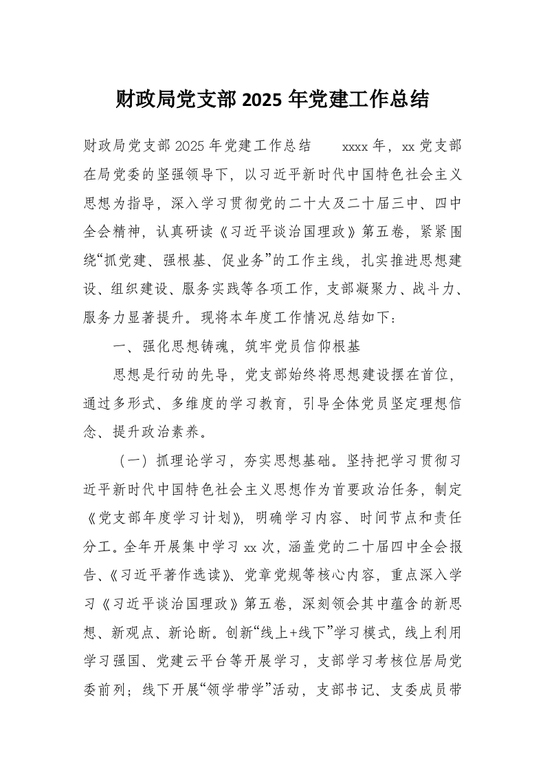 首页讲课讲稿财政局党支部2025年党建工作总结