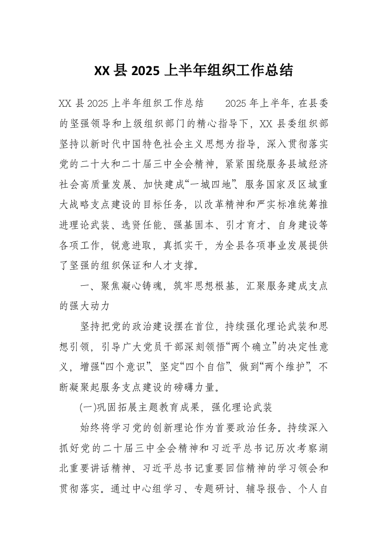 首页讲课讲稿XX县2025上半年组织工作总结