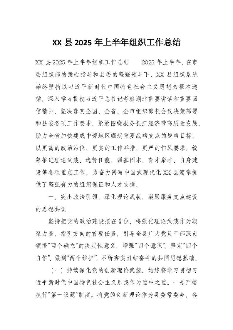 首页讲课讲稿XX县2025年上半年组织工作总结