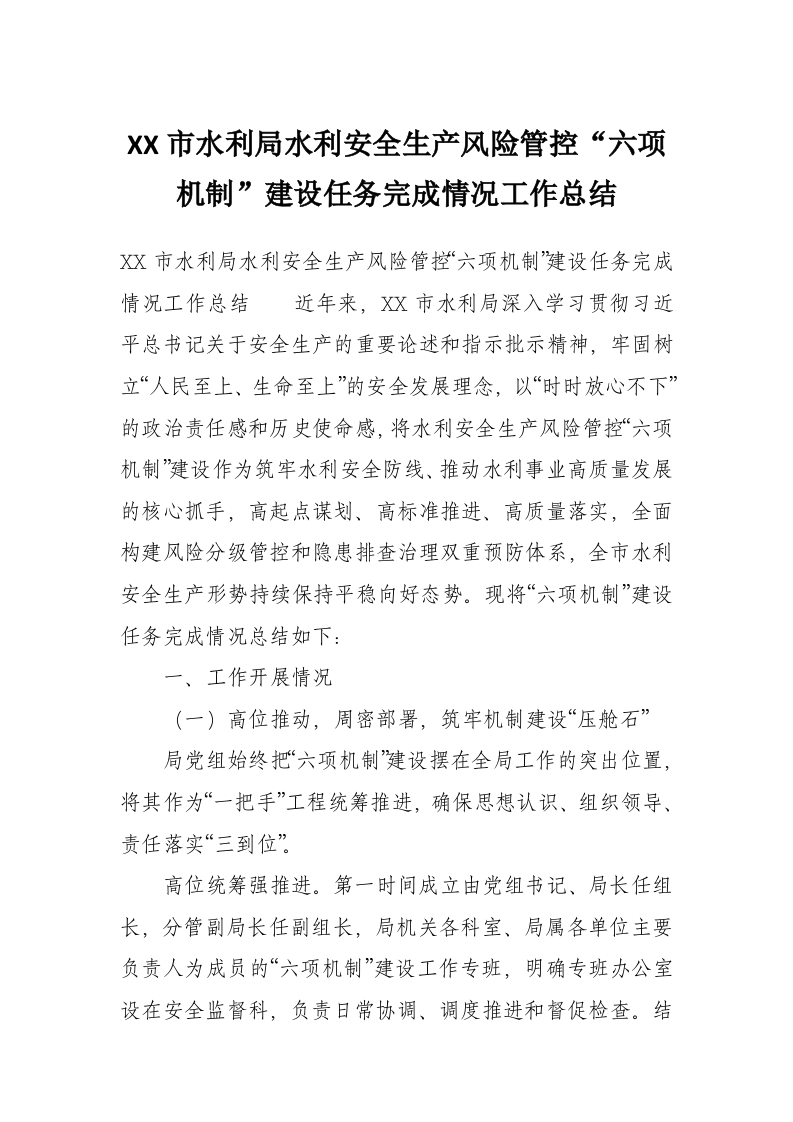XX市水利局水利安全生产风险管控“六项机制”建设任务完成情况工作总结