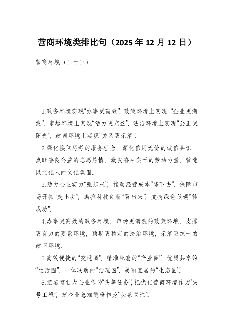 营商环境类排比句(2025年12月12日)