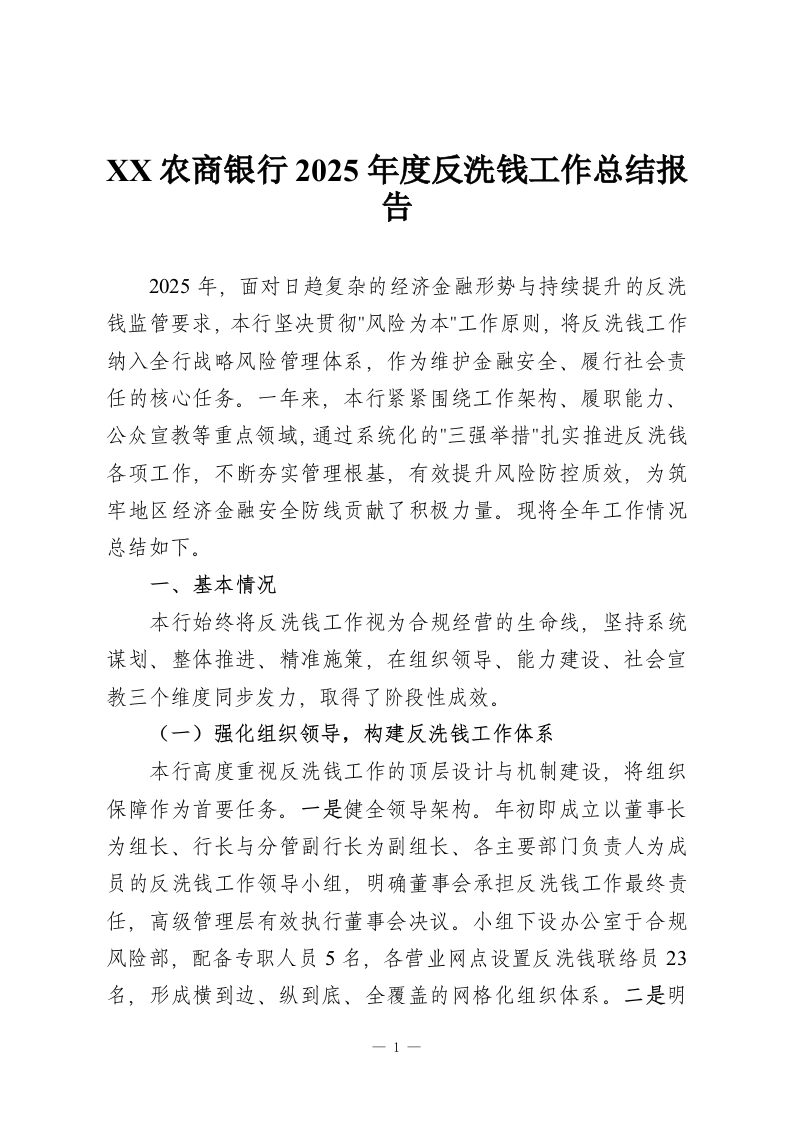 XX农商银行2025年度反洗钱工作总结报告