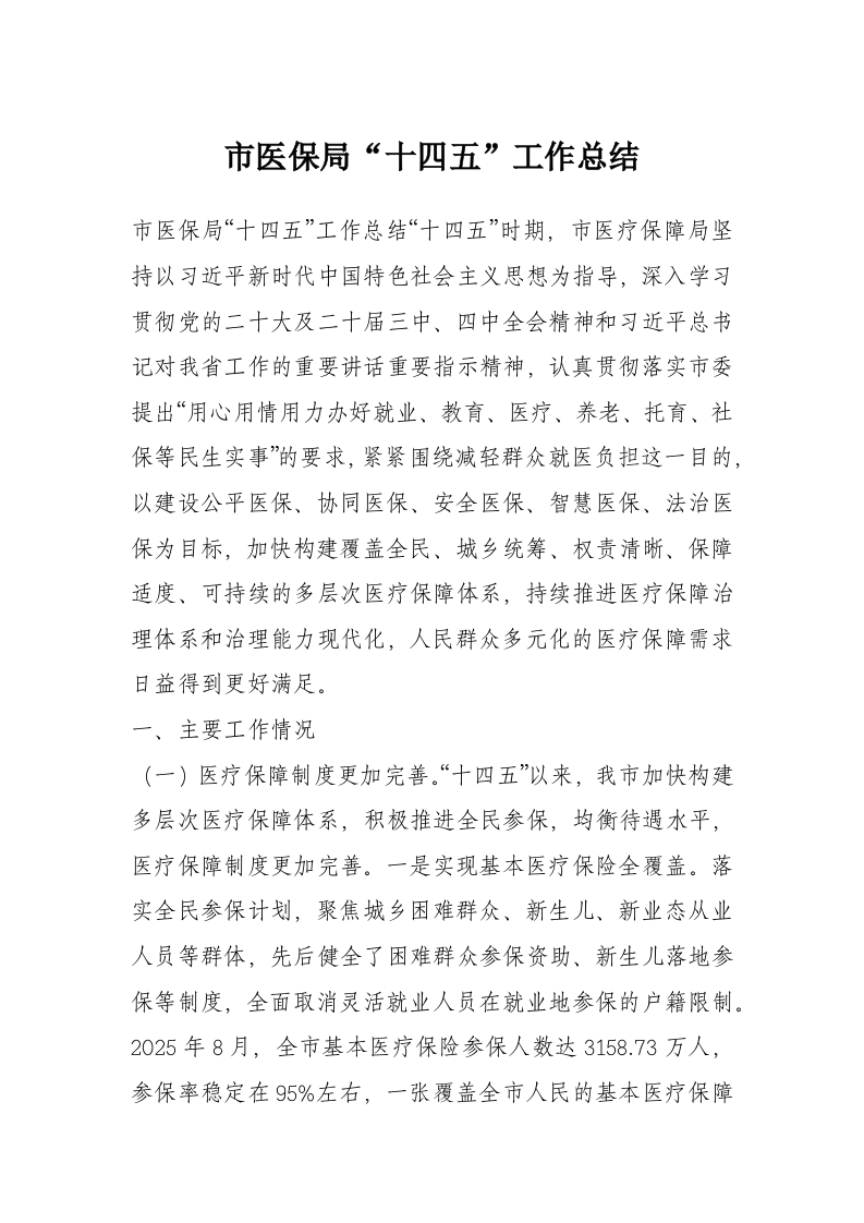 首页学习提升市医保局“十四五”工作总结
