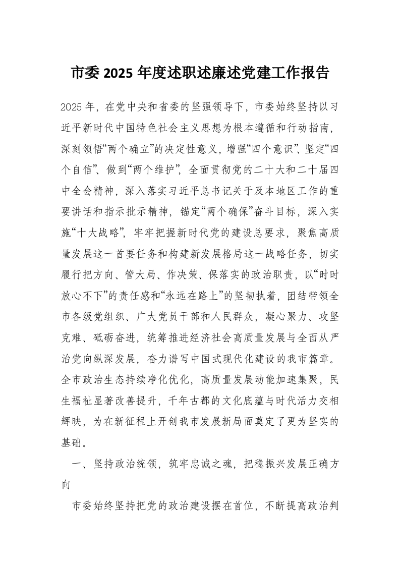 首页学习提升市委2025年度述职述廉述党建工作报告