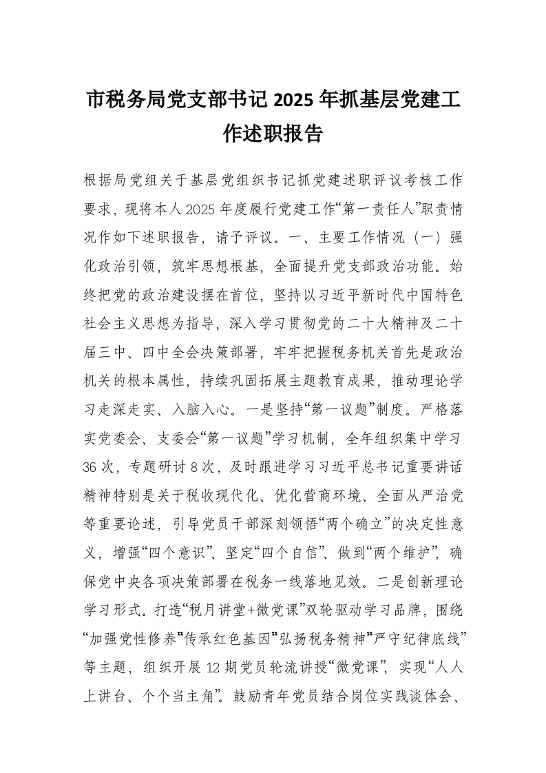 市税务局党支部书记2025年抓基层党建工作述职报告