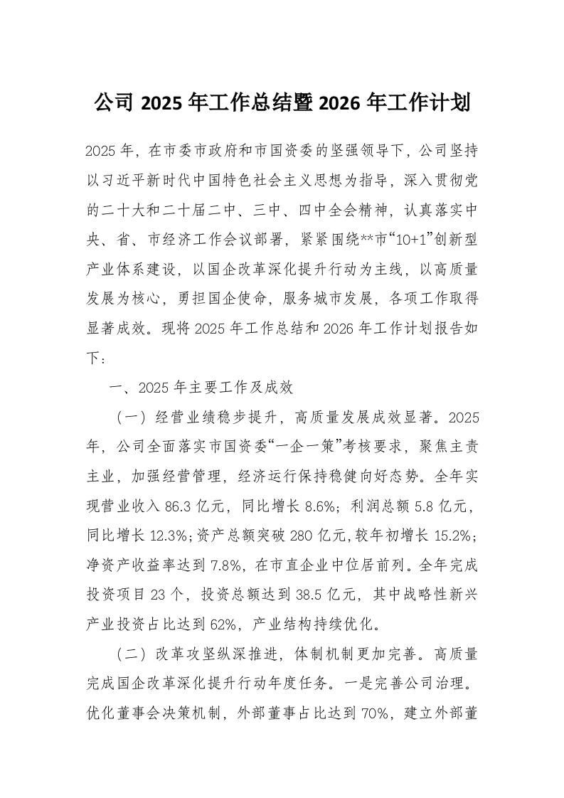 公司2025年工作总结暨2026年工作计划