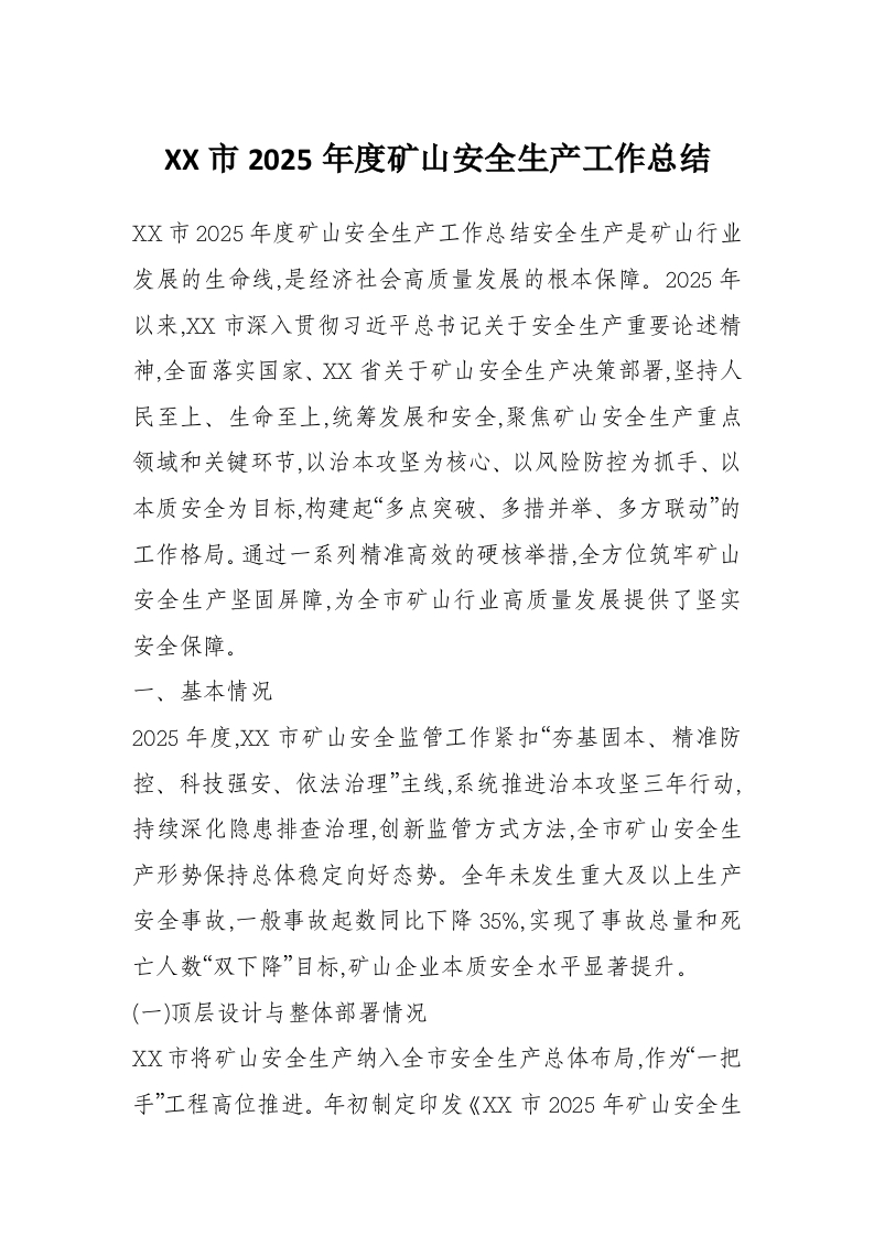 首页材料汇编XX市2025年度矿山安全生产工作总结
