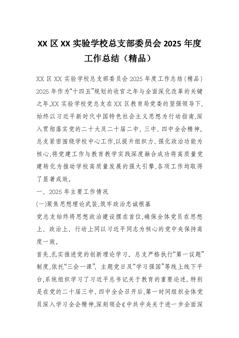 首页材料汇编XX区XX实验学校总支部委员会2025年度工作总结(精品)