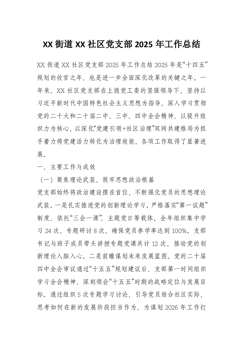 首页写作素材XX街道XX社区党支部2025年工作总结