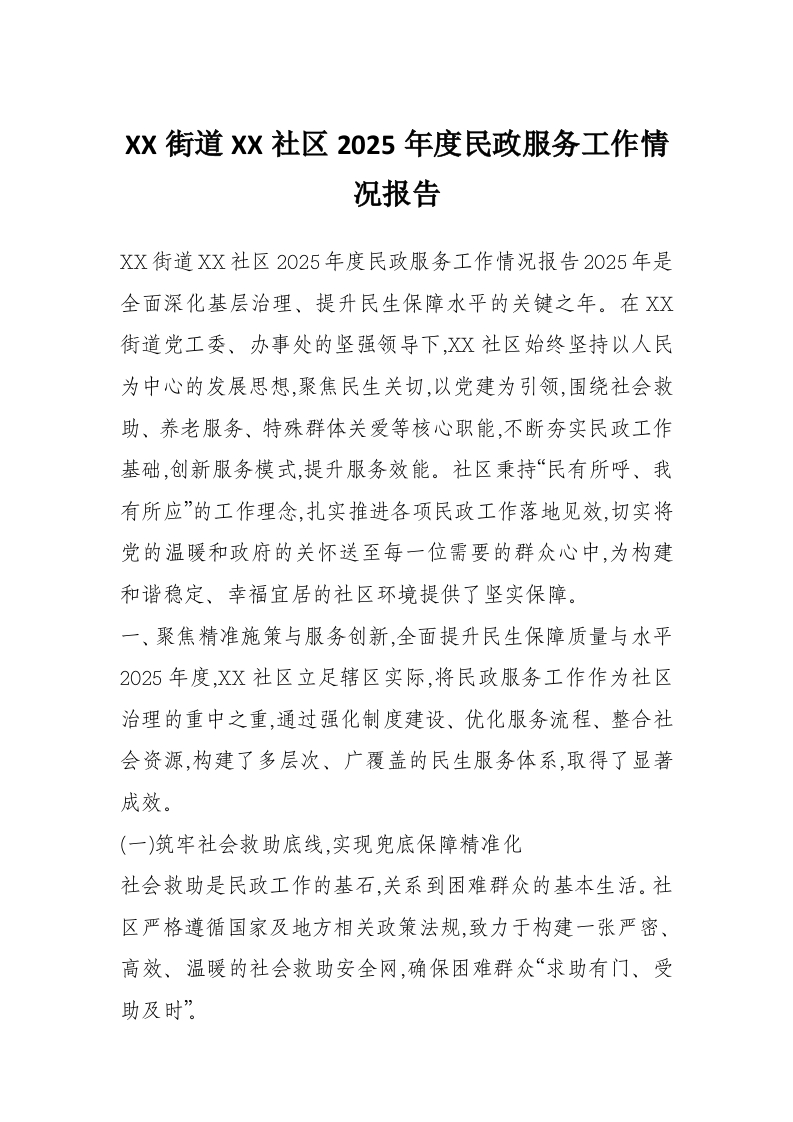 首页写作素材XX街道XX社区2025年度民政服务工作情况报告