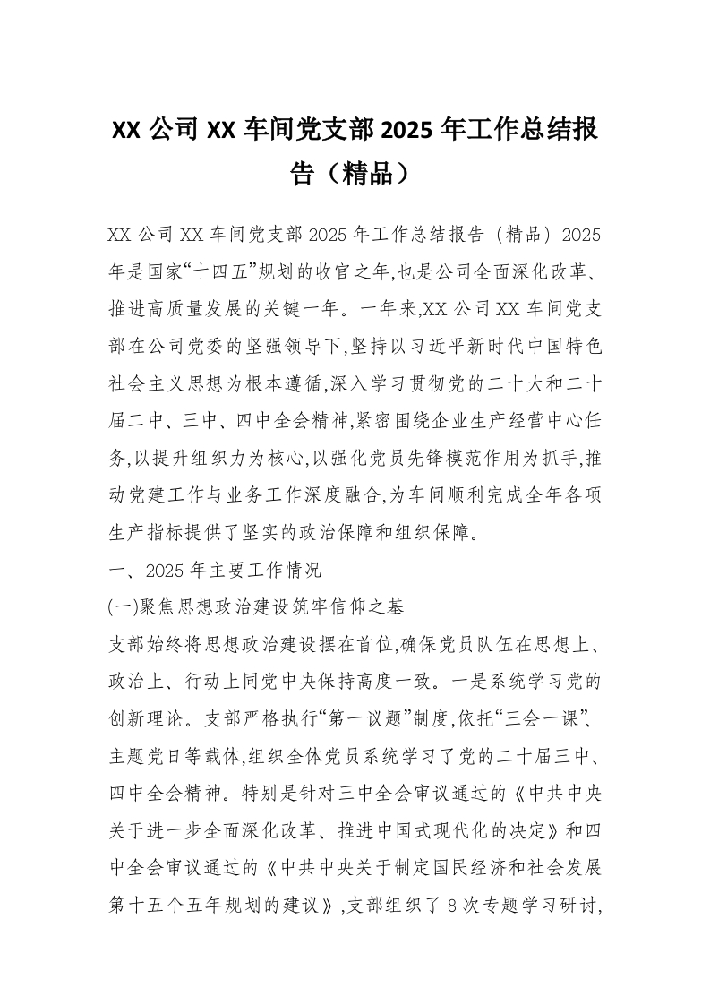 首页写作素材XX公司XX车间党支部2025年工作总结报告(精品)