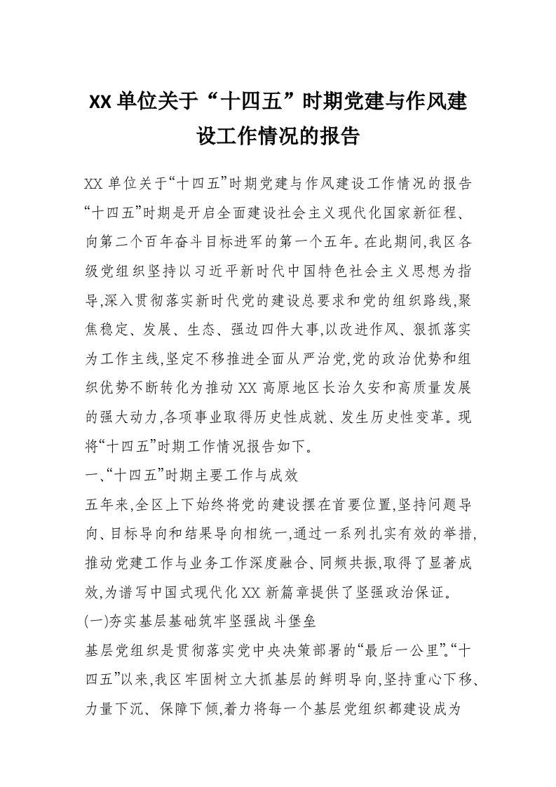 XX单位关于“十四五”时期党建与作风建设工作情况的报告