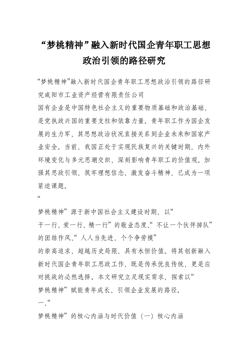 “梦桃精神”融入新时代国企青年职工思想政治引领的路径研究