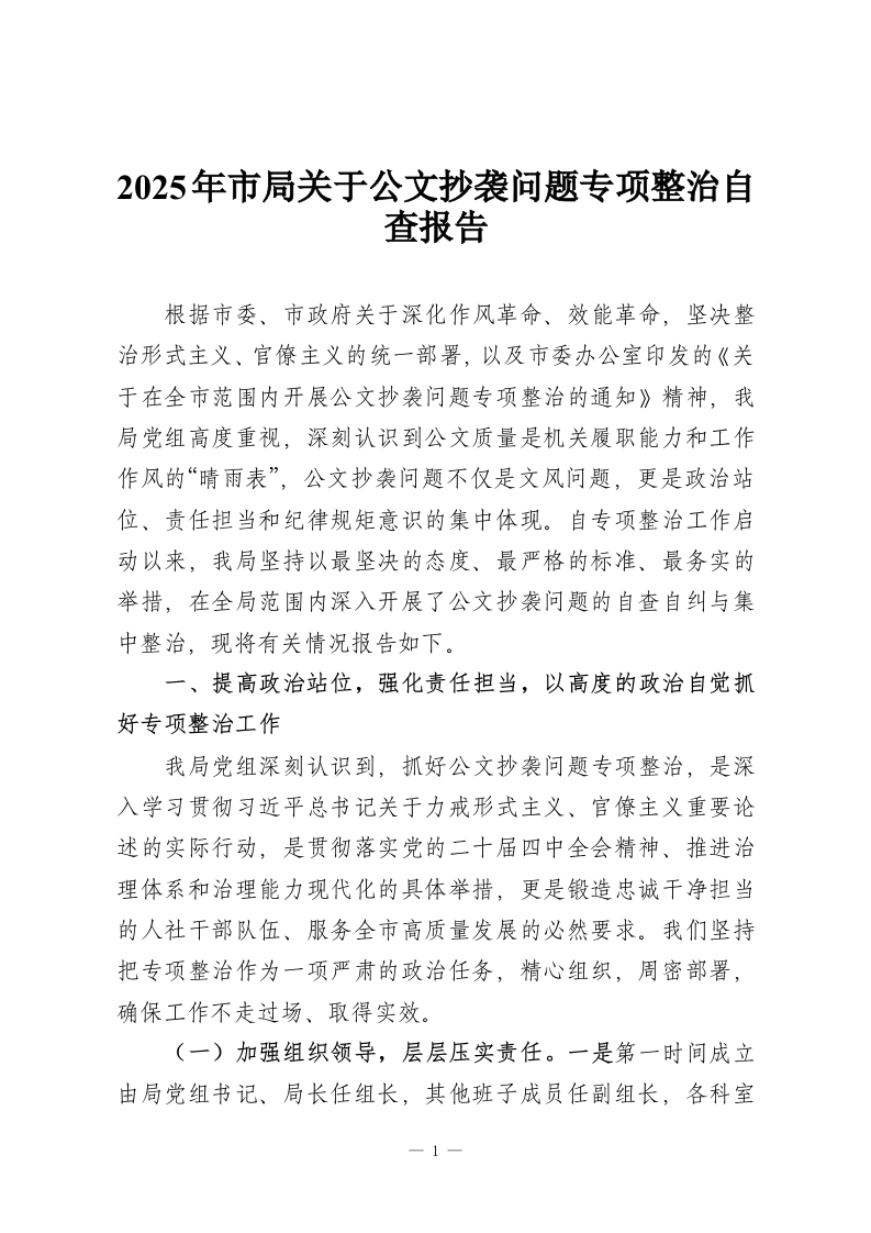 首页工作文档2025年市局关于公文抄袭问题专项整治自查报告