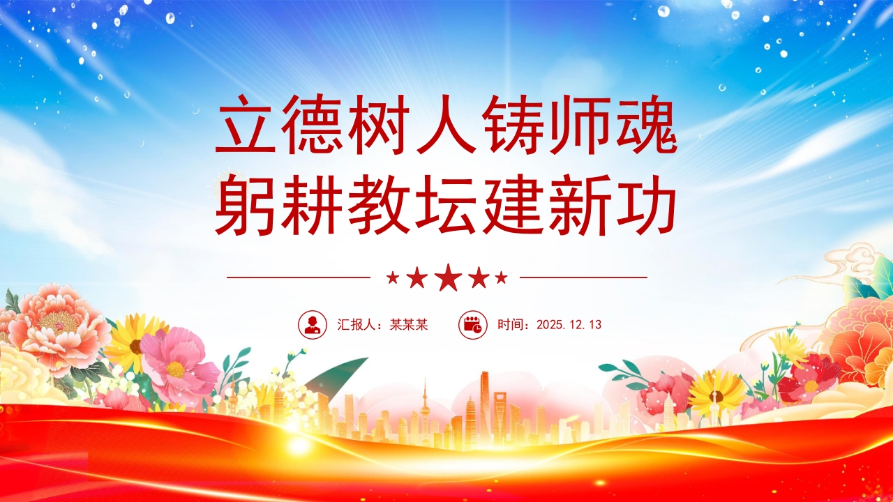 首页PPT模板精美时尚立德树人铸师魂躬耕教坛建新功PPT教育系统党课