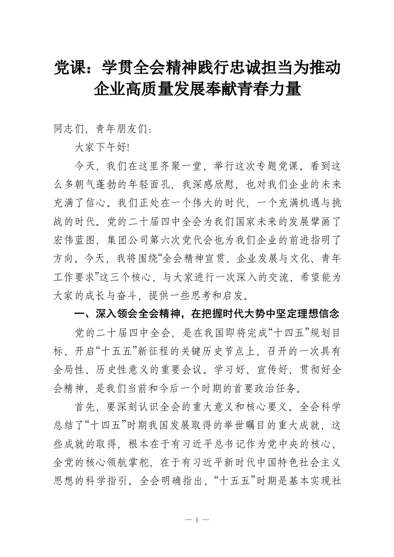 党课:学贯***精神践行忠诚担当为推动企业高质量发展奉献青春力量