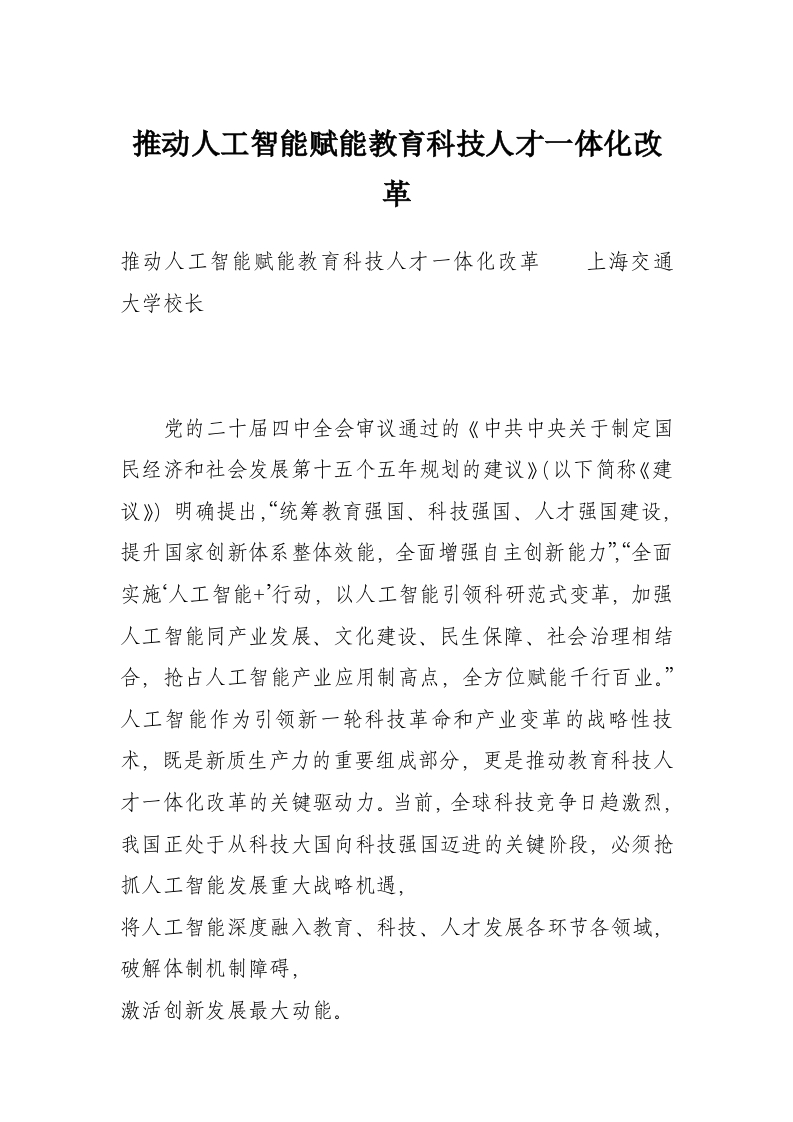 首页讲课讲稿推动人工智能赋能教育科技人才一体化改革
