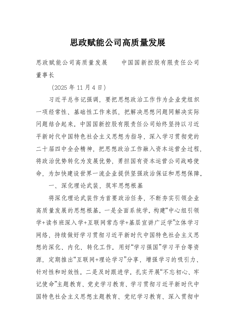 首页讲课讲稿思政赋能公司高质量发展