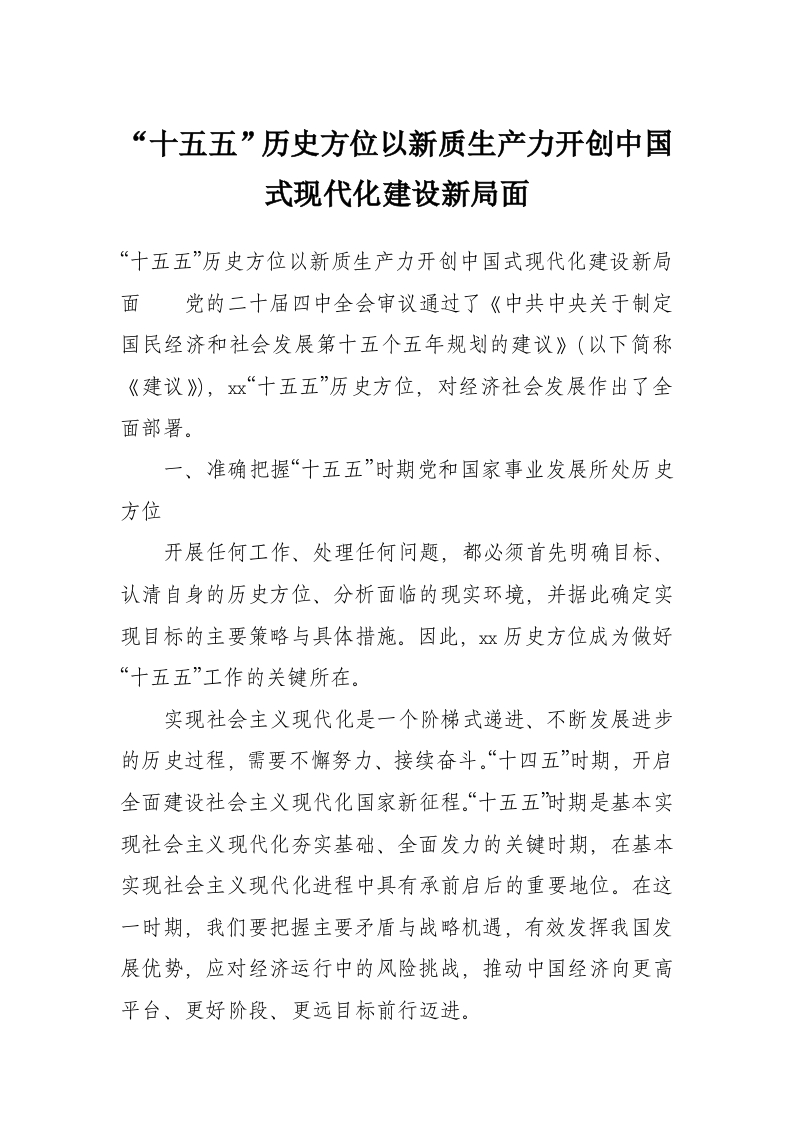 “十五五”历史方位以新质生产力开创中国式现代化建设新局面