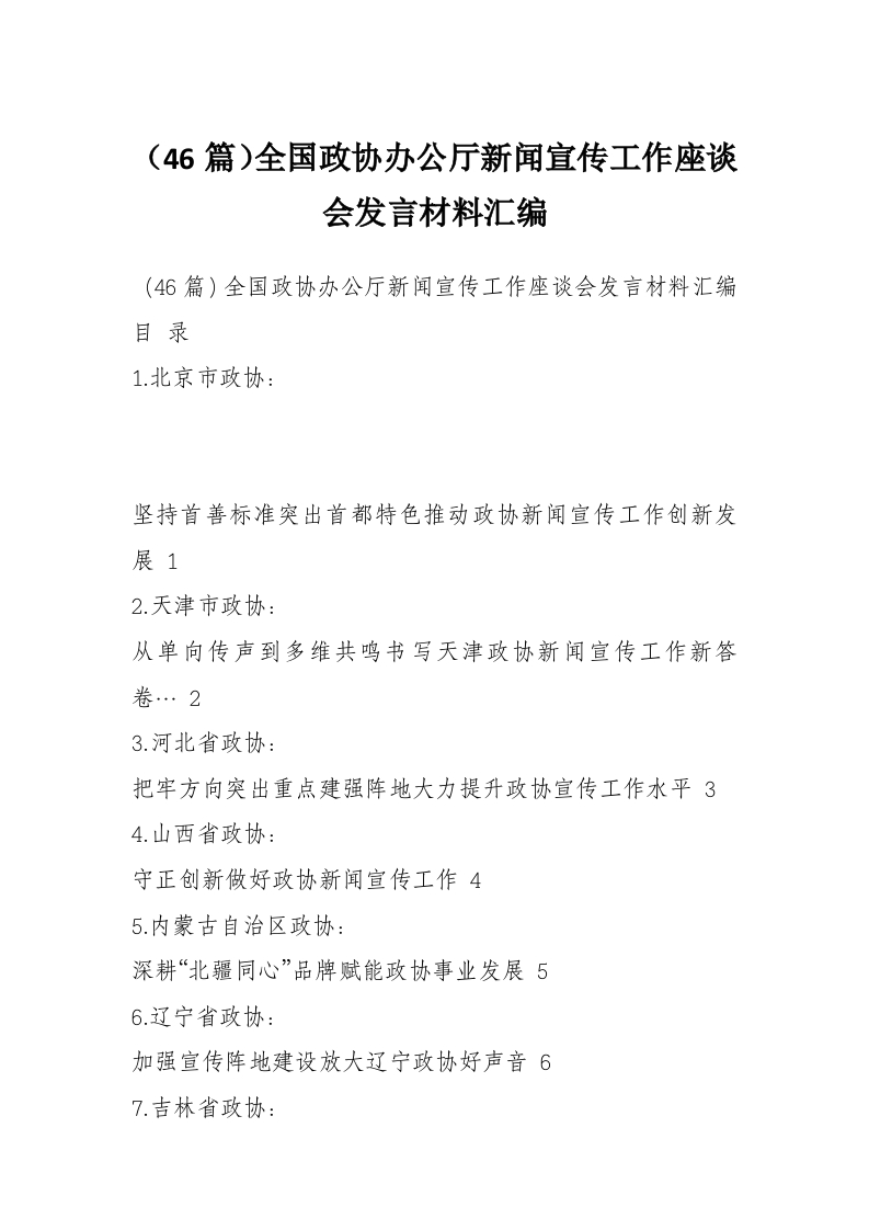 (46篇)全国政协办公厅新闻宣传工作座谈会发言材料汇编