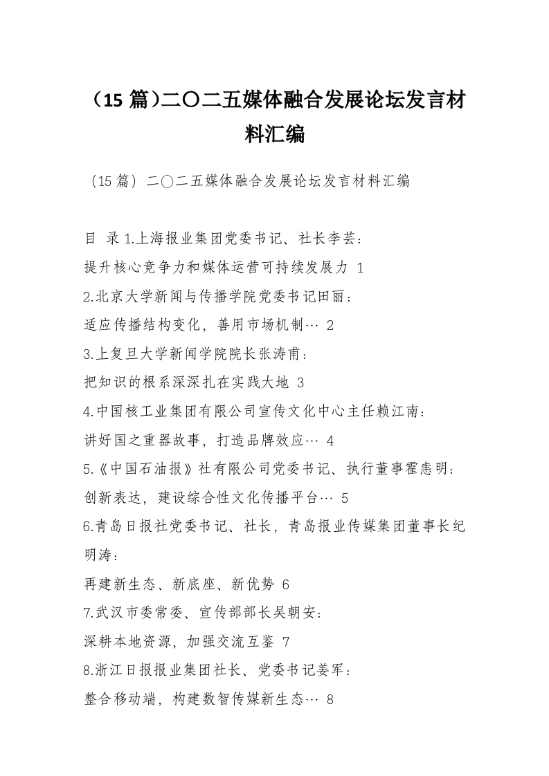 (15篇)二〇二五媒体融合发展论坛发言材料汇编