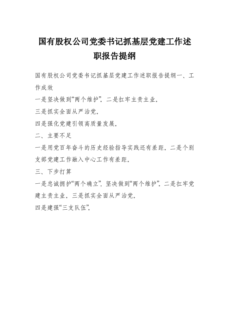 国有股权公司党委书记抓基层党建工作述职报告提纲_1