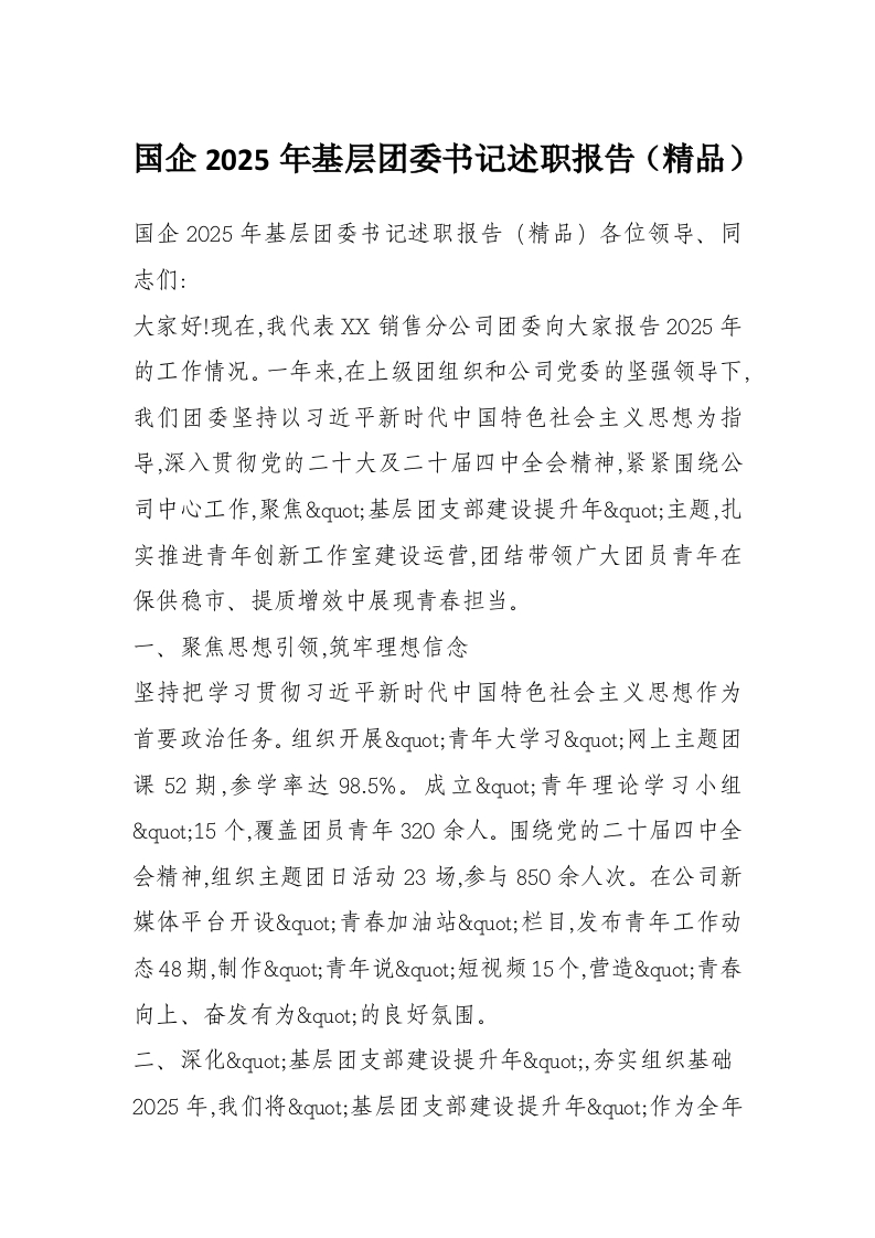首页材料汇编国企2025年基层团委书记述职报告(精品)