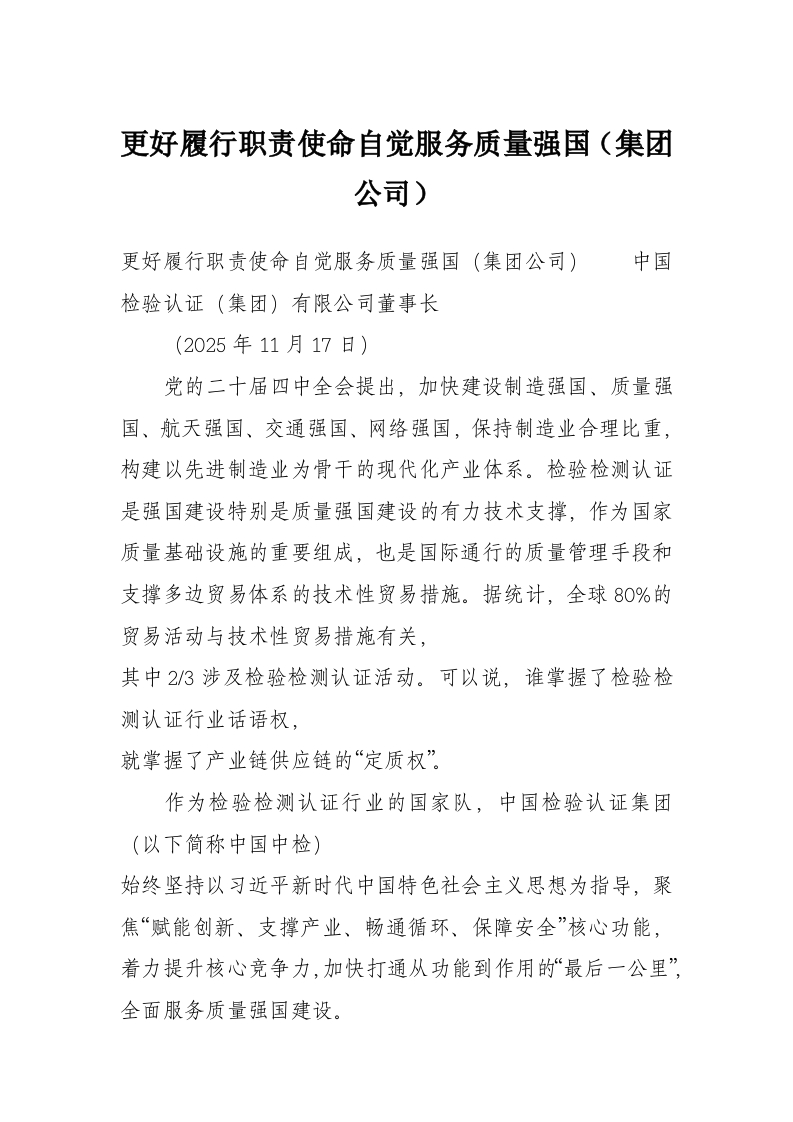 首页材料汇编更好履行职责使命自觉服务质量强国(集团公司)