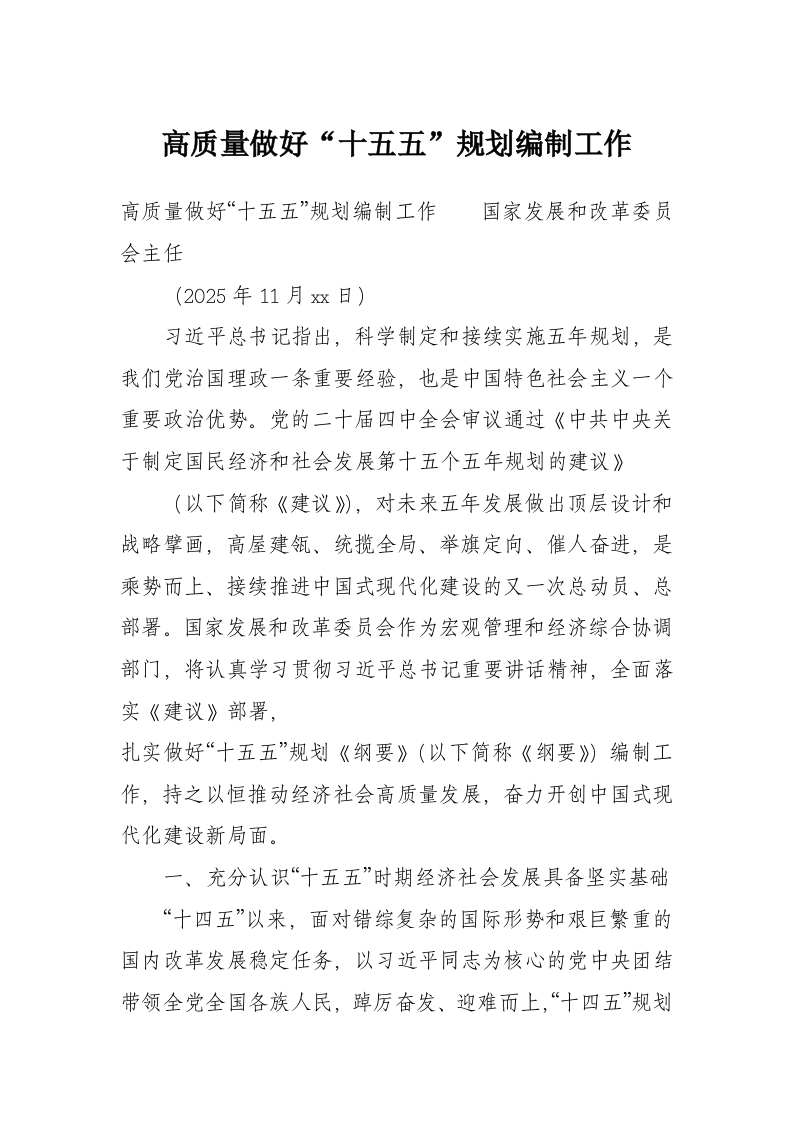 首页材料汇编高质量做好“十五五”规划编制工作