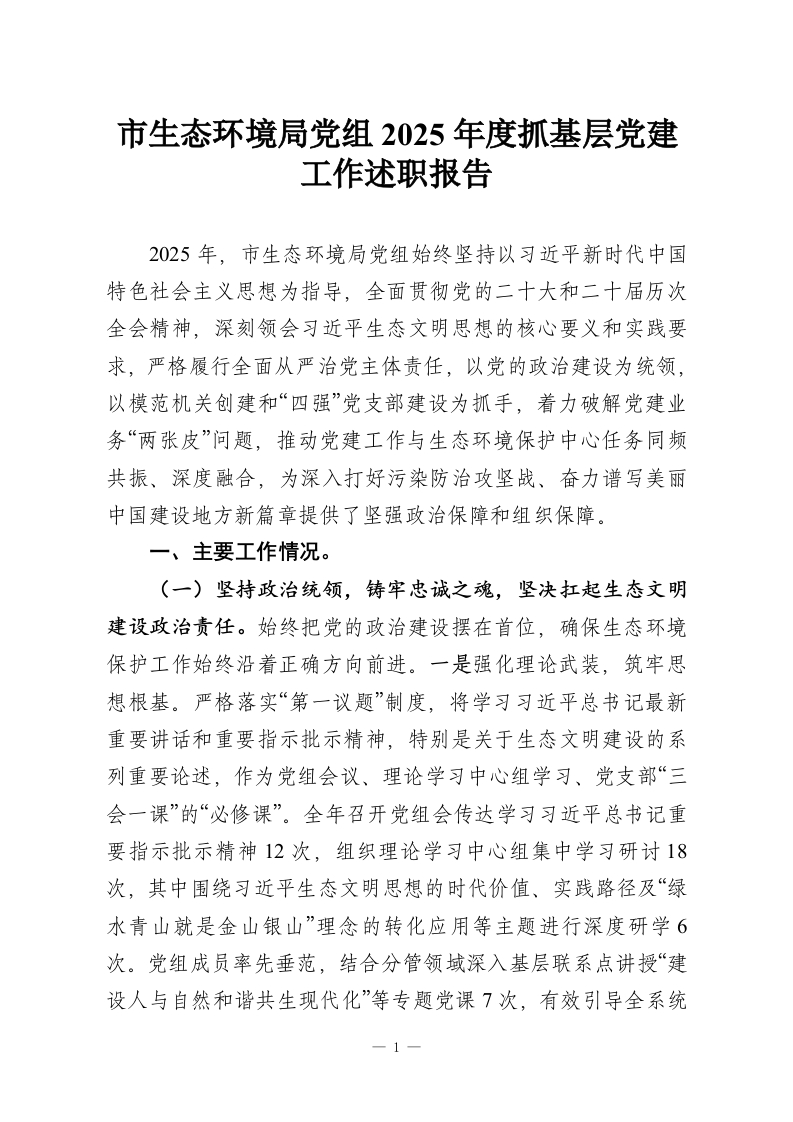 首页工作文档市生态环境局党组2025年度抓基层党建工作述职报告