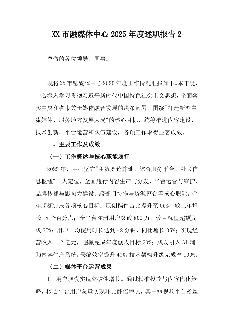 首页工作文档XX市融媒体中心2025年度述职报告2