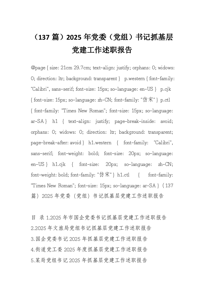 (137篇)2025年党委(党组)书记抓基层党建工作述职报告