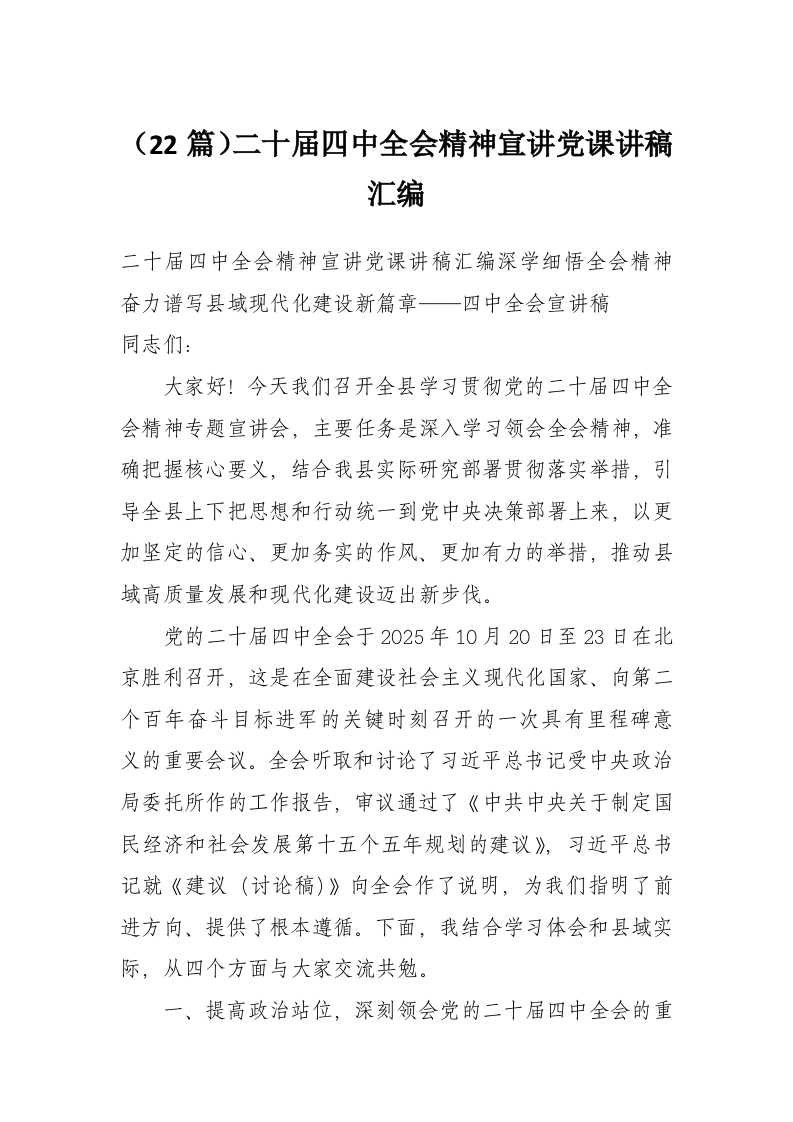 (22篇)二十届四中***精神宣讲党课讲稿汇编