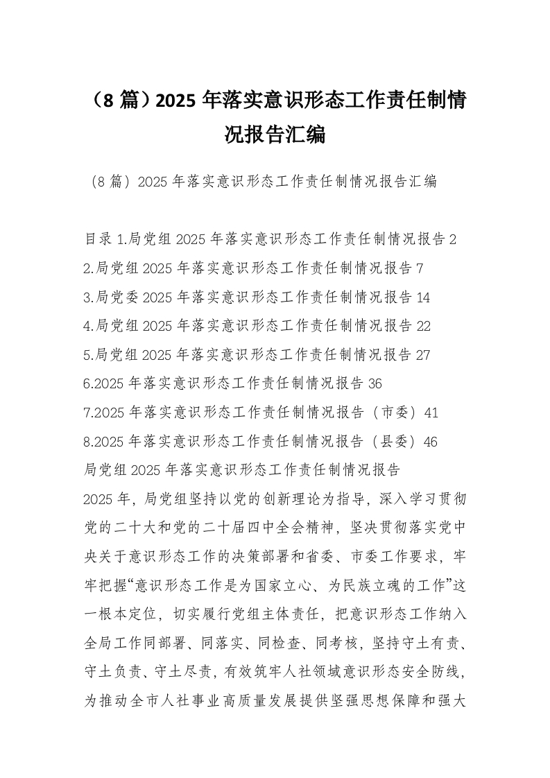 (8篇)2025年落实意识形态工作责任制情况报告汇编