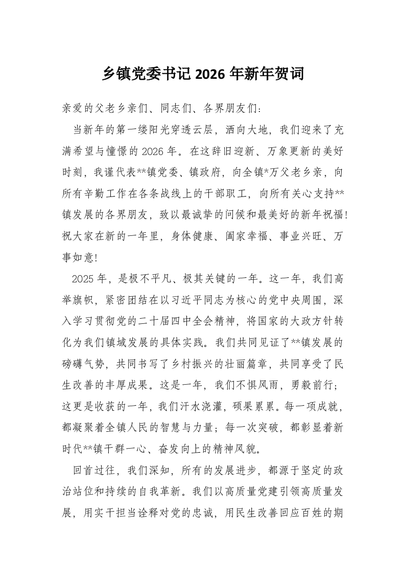 首页讲课讲稿乡镇党委书记2026年新年贺词
