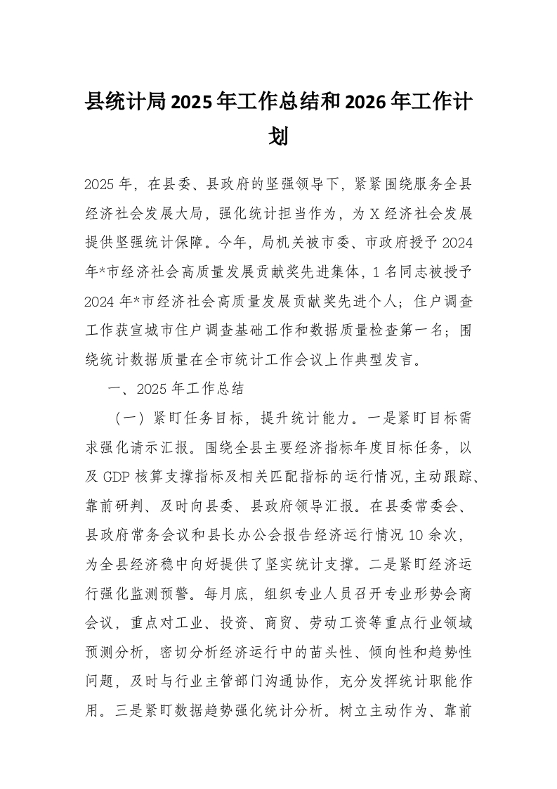 首页讲课讲稿县统计局2025年工作总结和2026年工作计划