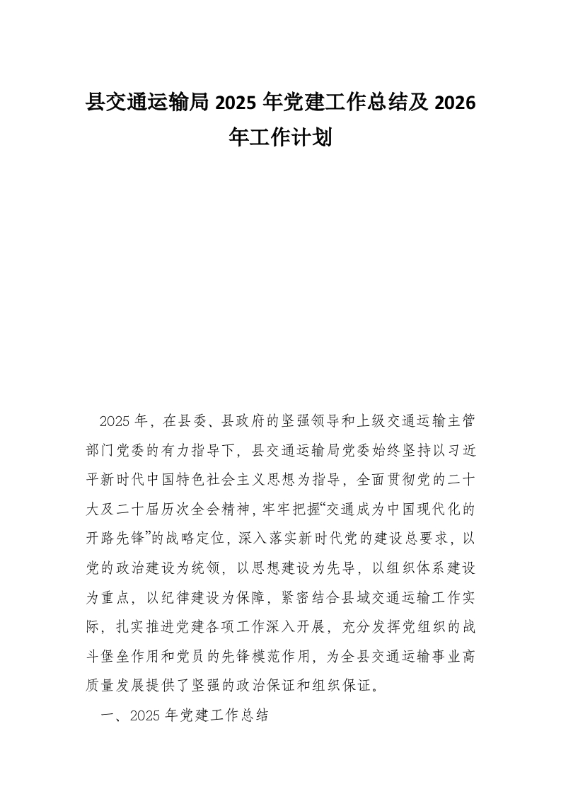 首页讲课讲稿县交通运输局2025年党建工作总结及2026年工作计划