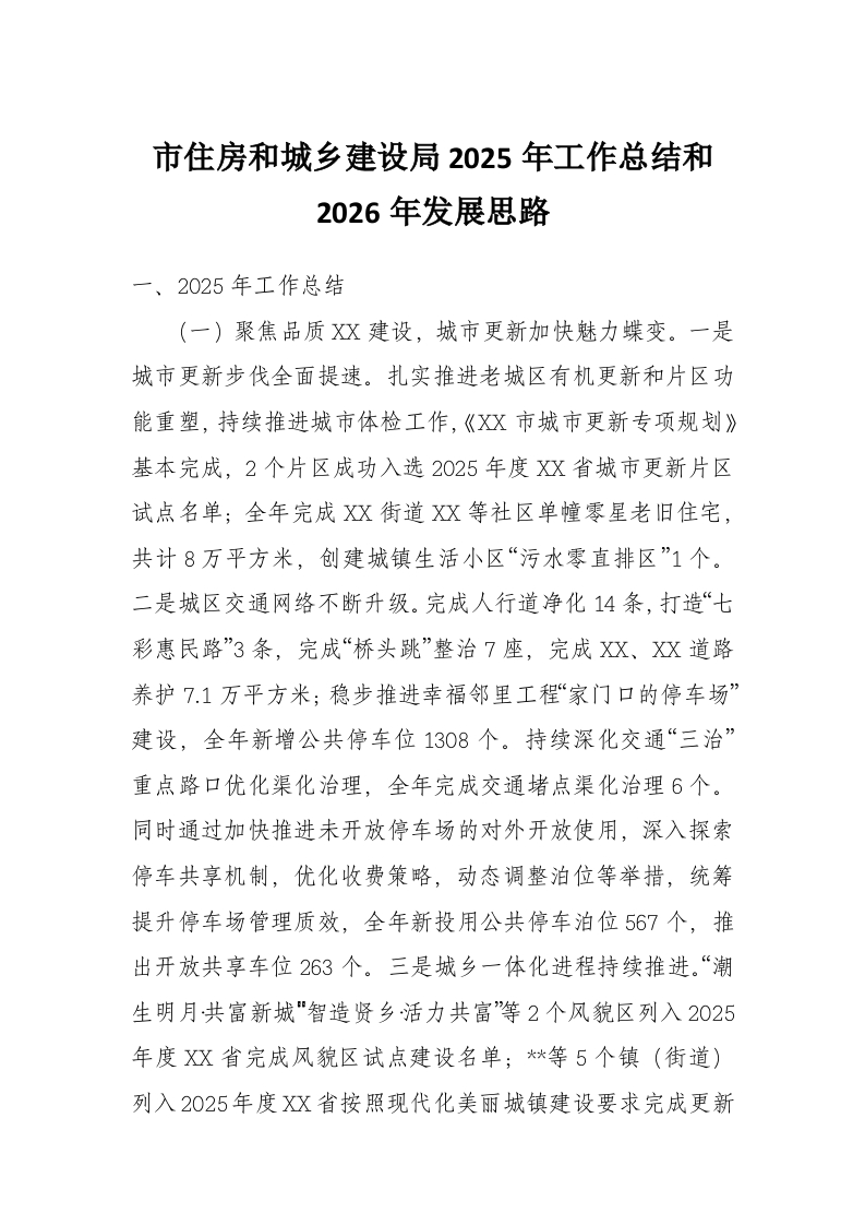 市住房和城乡建设局2025年工作总结和2026年发展思路