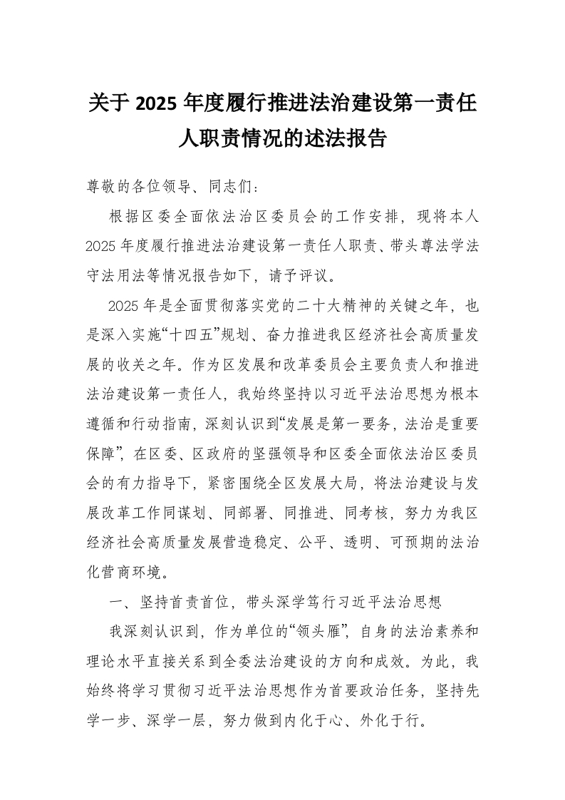 关于2025年度履行推进法治建设第一责任人职责情况的述法报告