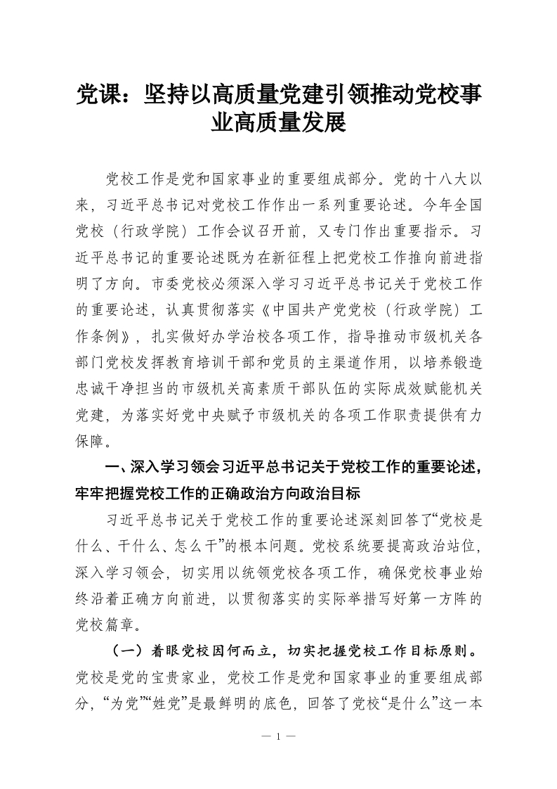 党课:坚持以高质量党建引领推动党校事业高质量发展