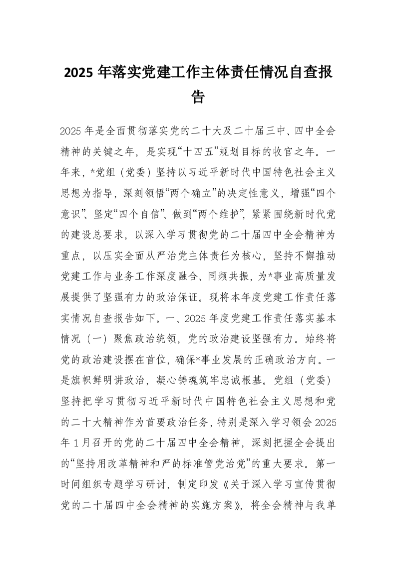 首页工作文档2025年落实党建工作主体责任情况自查报告
