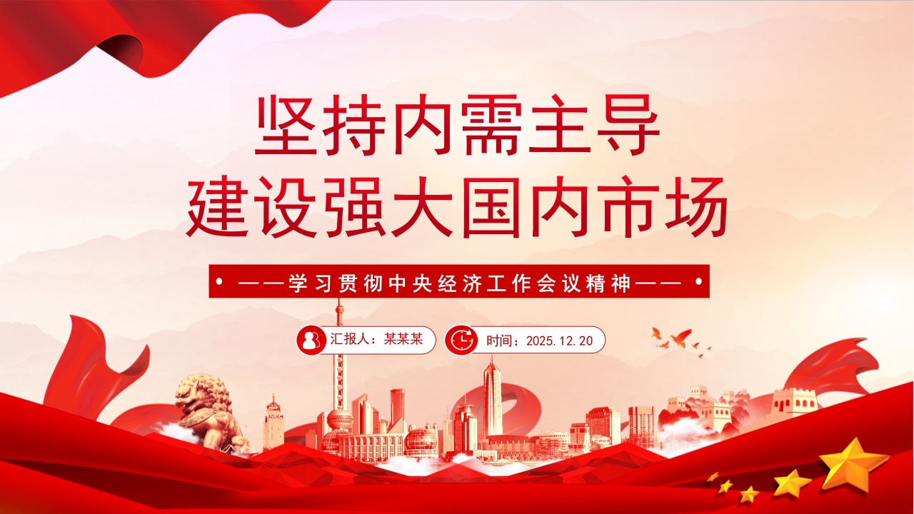 红色简洁坚持内需主导建设强大国内市场PPT学习中央经济工作会议精神