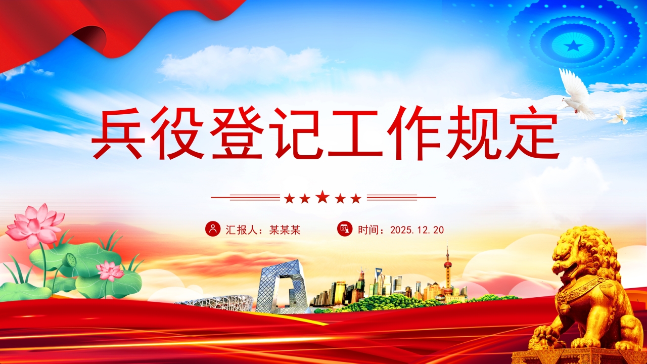 首页PPT模板红色党政风《兵役登记工作规定》PPT课件