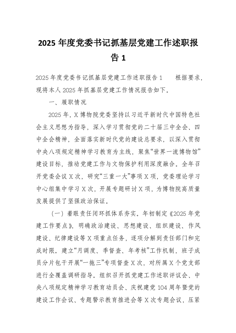 首页讲课讲稿2025年度党委书记抓基层党建工作述职报告1