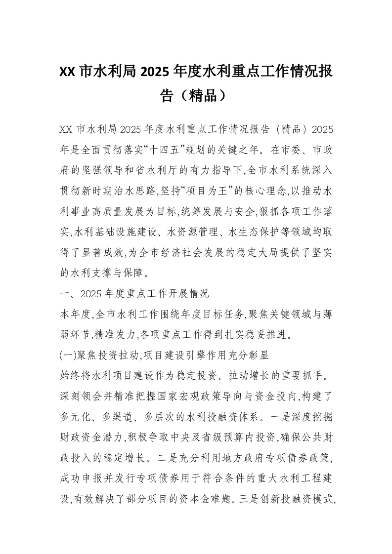 XX市水利局2025年度水利重点工作情况报告(精品)