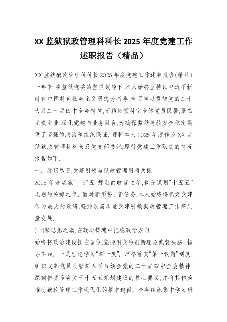 XX监狱狱政管理科科长2025年度党建工作述职报告(精品)