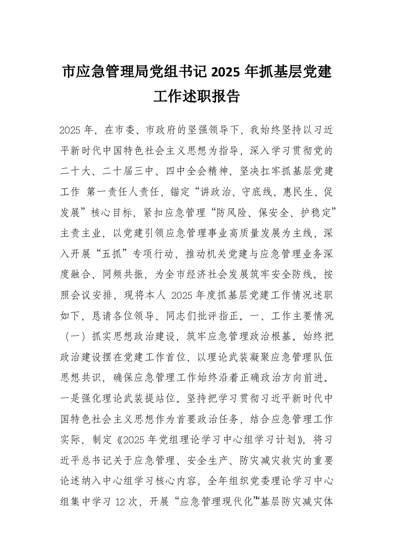 市应急管理局党组书记2025年抓基层党建工作述职报告