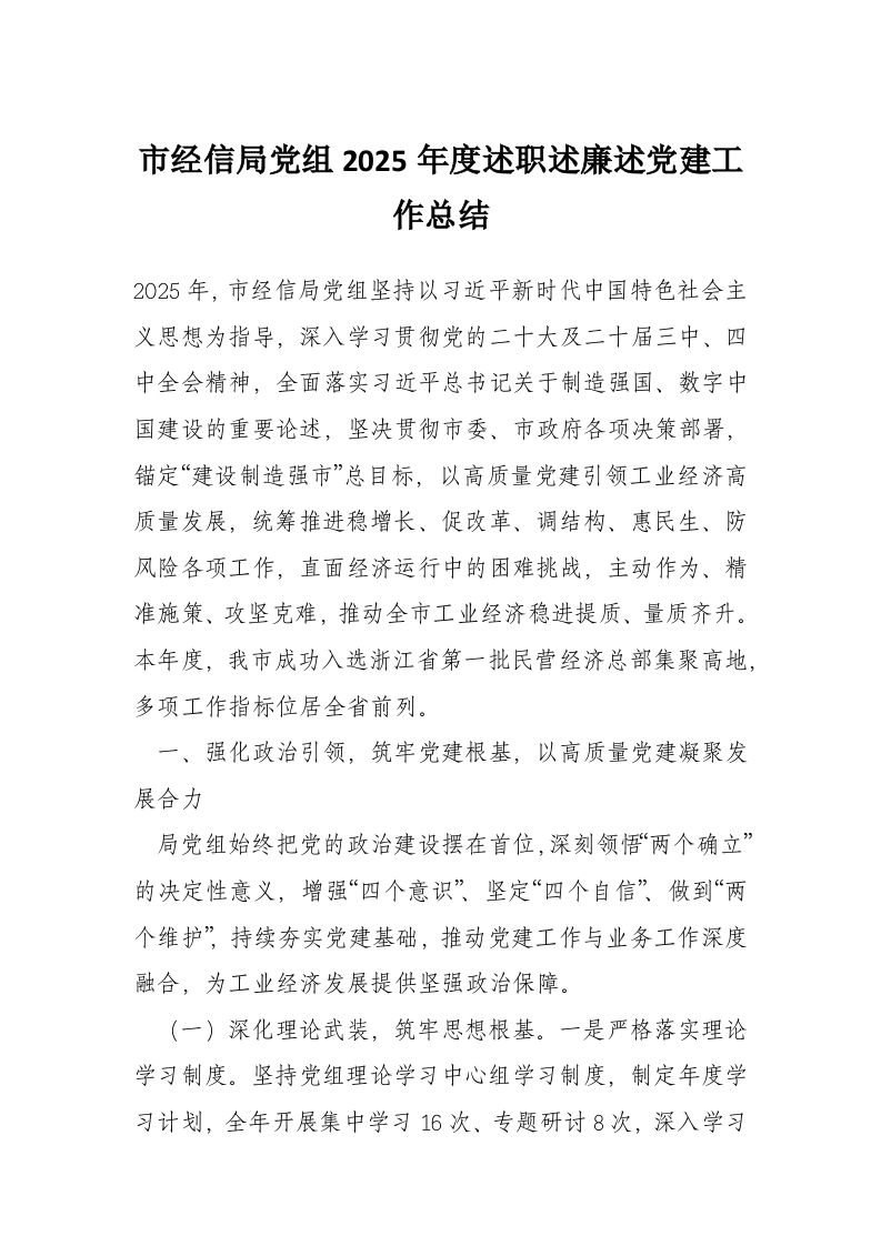 首页材料汇编市经信局党组2025年度述职述廉述党建工作总结