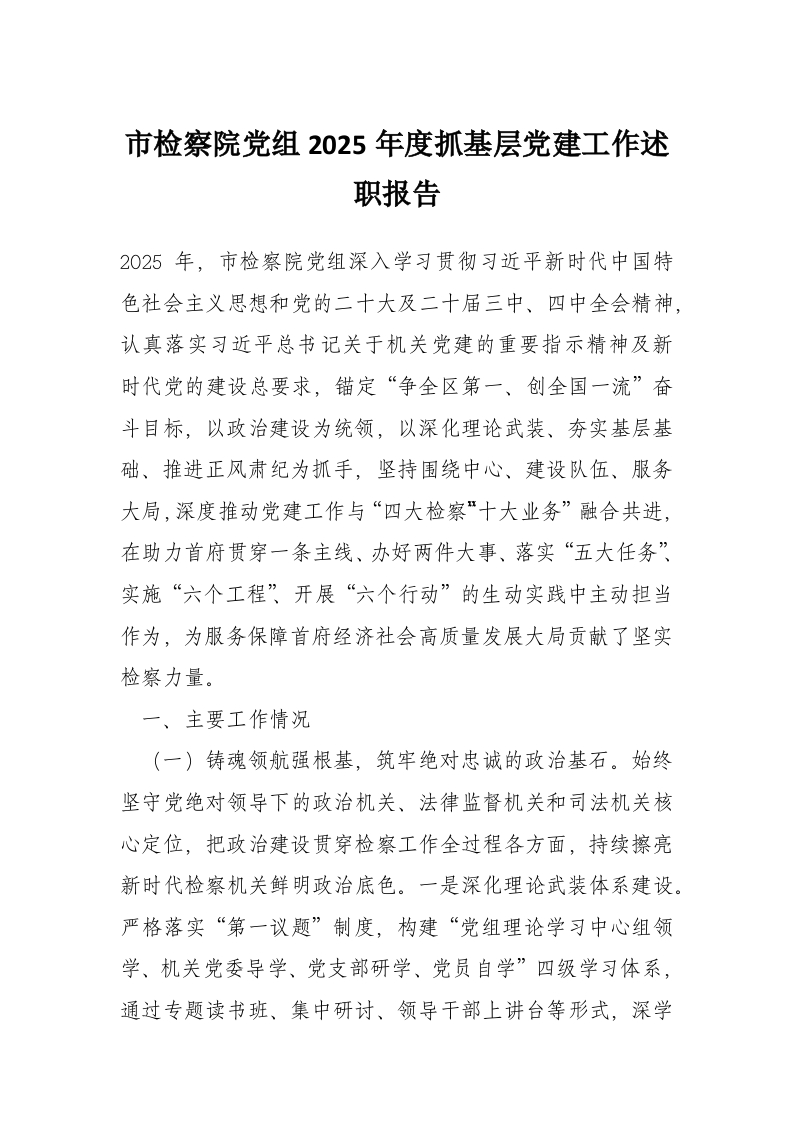 首页材料汇编市检察院党组2025年度抓基层党建工作述职报告