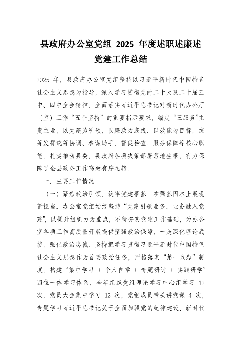 县***办公室党组 2025 年度述职述廉述党建工作总结